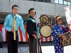 富山の中心部、プロレスリングのようなステージが組まれた富山公園の広場で、約3分くらいのちんどんパフォーマンスをやりました。